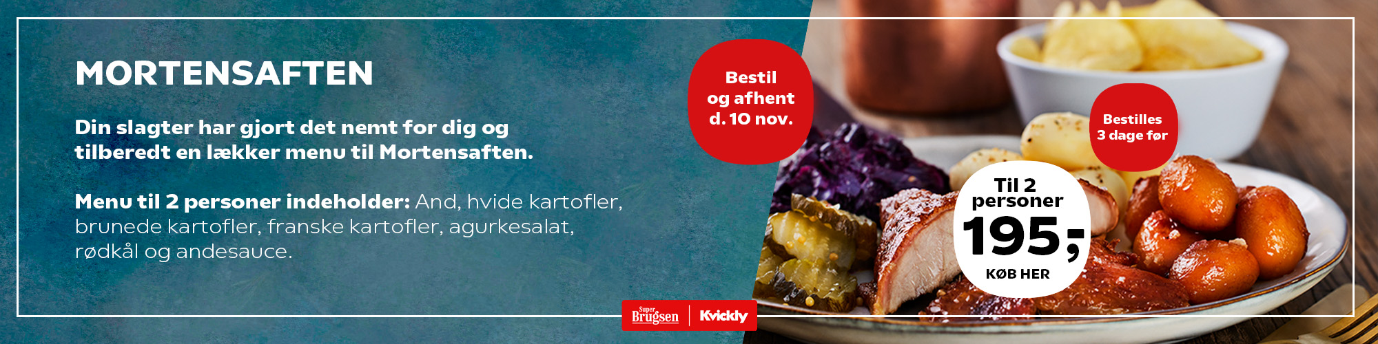Din slagter har i samarbejde med kokken Carsten Kyster, udviklet en lækker menu bestående af 4 retter med minimal tilberedning og maksimal madglæde.