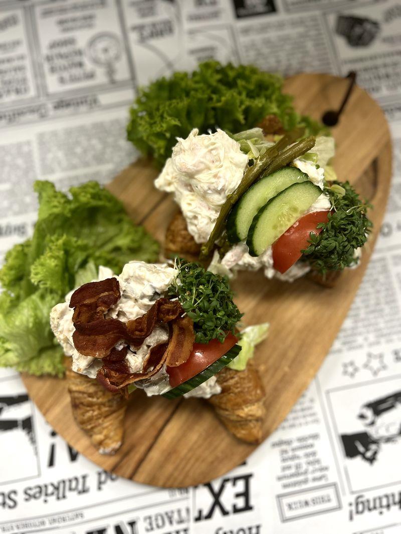 Lækker croissant med hjemmelavet rejesalat eller hjemmelavet hønsesalat.